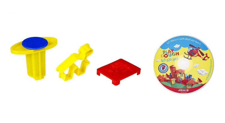 لوازم جانبی: 10 خمیر، غلتک، سرنگ، 3 صفحه شکلساز، قالب، سفره نایلونی،3 ابزار، DVD آموزشی.