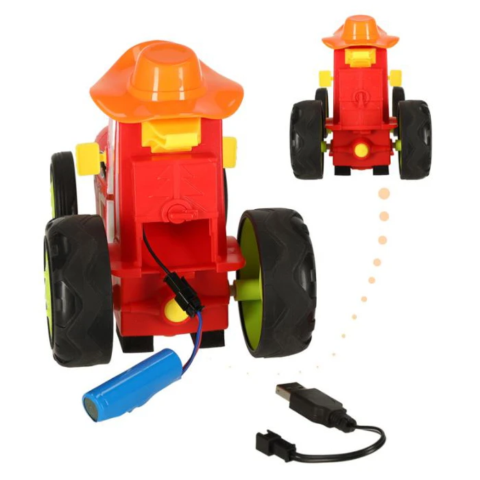 تراکتور دیوانه شارژی کنترلی یک محصول جدید و ماشین کنترلی با طراحی بسیار زیبا و با کیفیت می باشد که قابلیت پرش به سمت جلو و حرکت روی دو چرخ عقب را دارد. این ماشین دارای یک باتری قابل شارژ است که در بسته بندی محصول موجود است و کنترل آن نیز با 2 عدد باتری 1.5V قلمی تغذیه میشود.. این ماشین همچنین قابلیت حرکت در همه جهات را دارد.هم چنین این ماشین موزیکال و چراغدار می باشد که به زیبایی این محصول می افزاید.دارای نشان استاندارد اروپا ، انگلستان و کانادا میباشد .با بسته مناسب جهت هدیه دادن به کودکان می باشد.