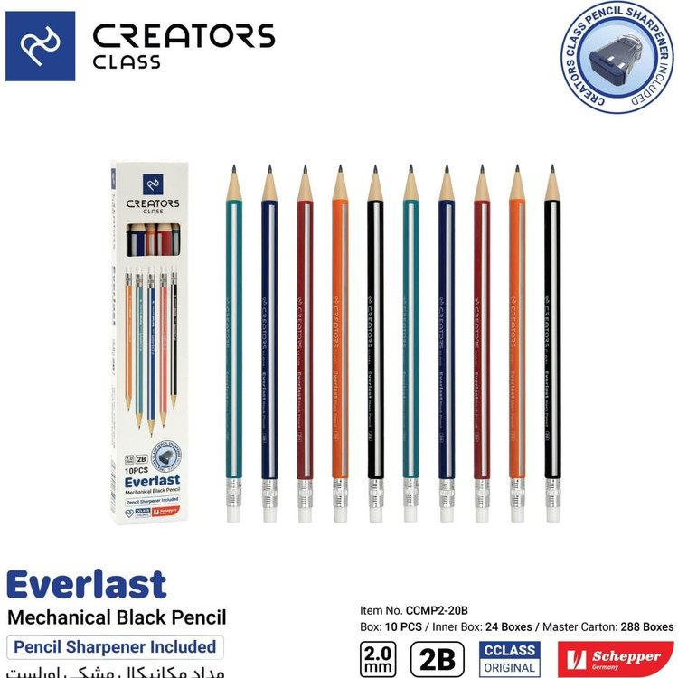 تعداد در بسته : 10 عدد مداد مکانیکال به همراه یک عدد تراش دو قلو