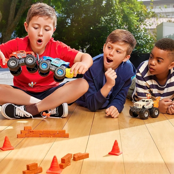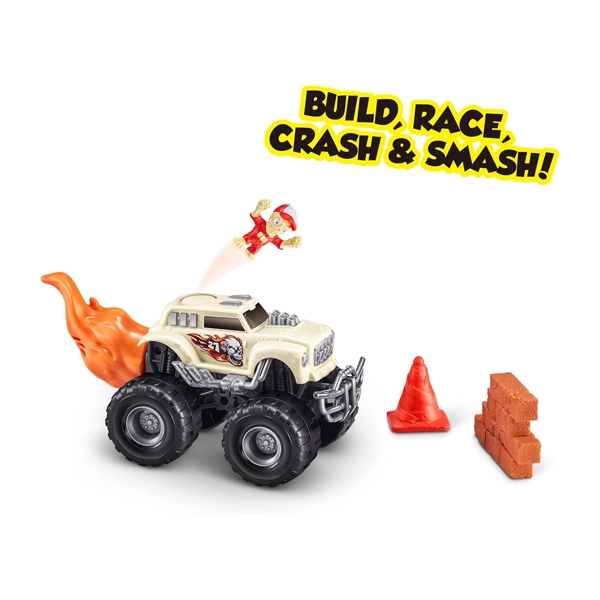 مانستر تراک اسمشرز، سورپرایزی جذابی هست که داخل لاستیک مشکی با شعله رنگی قرار گرفته و منتظره تا شما کشفش کنید. بعد از خارج کردن بخشهای مختلف از داخل بستهبندی، باید هر تکه از مانستر تراک رو از بین اسلایم و شن جادویی پیدا کنید و بعد از سر هم کردنشون، آماده بازی بشین. با چیدن آجرها و موانع نارنجیرنگ، میشه مسیری رو درست کرد تا در کنار مانستر تراکهای دوستهاتون، یک مسابقه هیجانانگیز رو آغاز کنید.